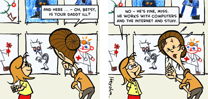Falls es jemand wirklich wissen will kann er sich die wahre, ungeschönte Version von dem Catoonisten Heyoka zeigen lassen. Alle seine Strips sind der Hammer. Sie sind punktgenau und treffen unseren Job wirklich mitten auf die Fontanelle. Einfach mal durchklicken, die Lacher sind garantiert.